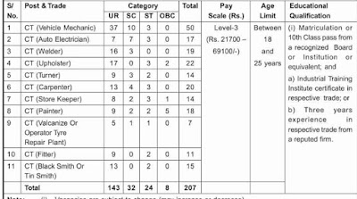 RECRUITMENT OF 207 SMT (WORKSHOP) IN BSF 2018-19