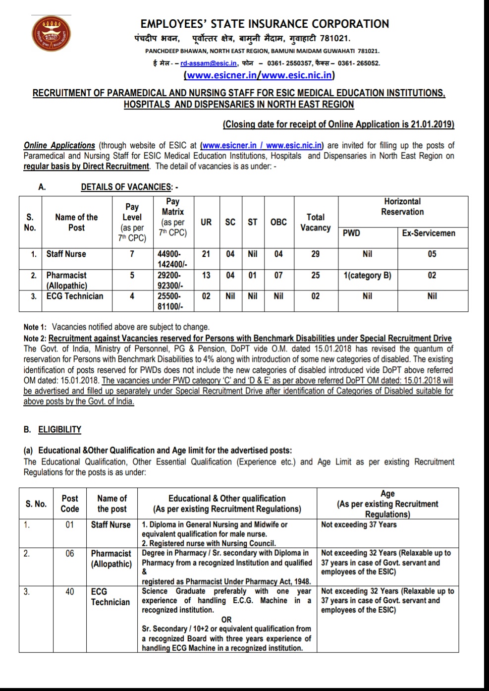 21.01.2019. This is including 56 Posts for North Eastern States of India. ( 29