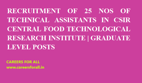 (Careersforall) is sharing the latest Job Vacancy details in CSIR Central Food