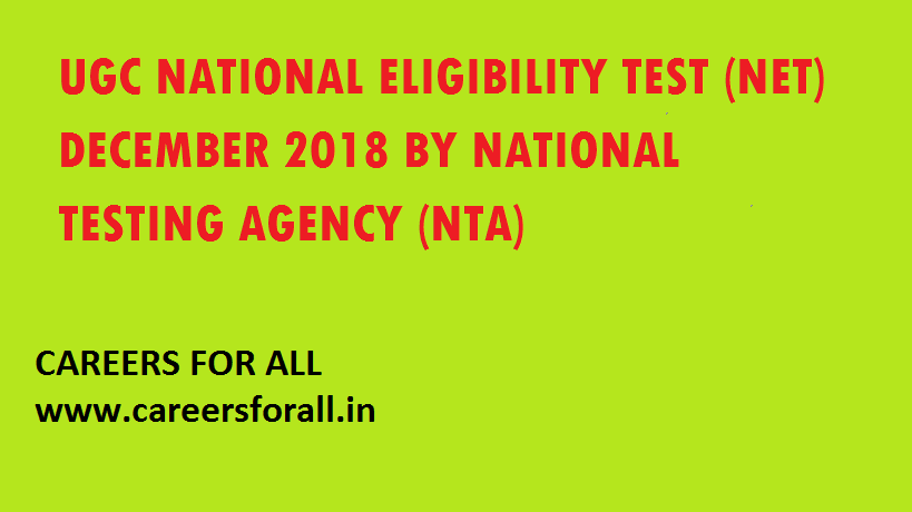 UGC NATIONAL ELIGIBILITY TEST (NET) DECEMBER 2018 BY NATIONAL TESTING AGENCY (NTA)