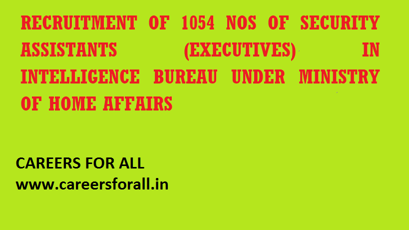 RECRUITMENT OF 1054 NOS OF SECURITY ASSISTANTS (EXECUTIVES) IN INTELLIGENCE BUREAU UNDER MINISTRY OF HOME AFFAIRS