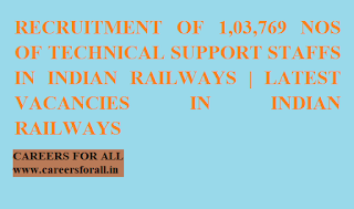 Railways for recruitment of 1,03,769 Nos of Technical Support Staffs in Indian